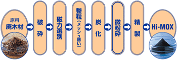当社の炭化システムは、廃木材・籾殻・食品残滓などの有機性廃棄物=バイオマスを原料としてNSシリーズ炭化装置で焼成することにより脱臭剤・ダイオキシン吸着剤等の有害ガス吸着剤・水質浄化材・微生物基材土壌活性剤などの高付加価値資材にリサイクルします。